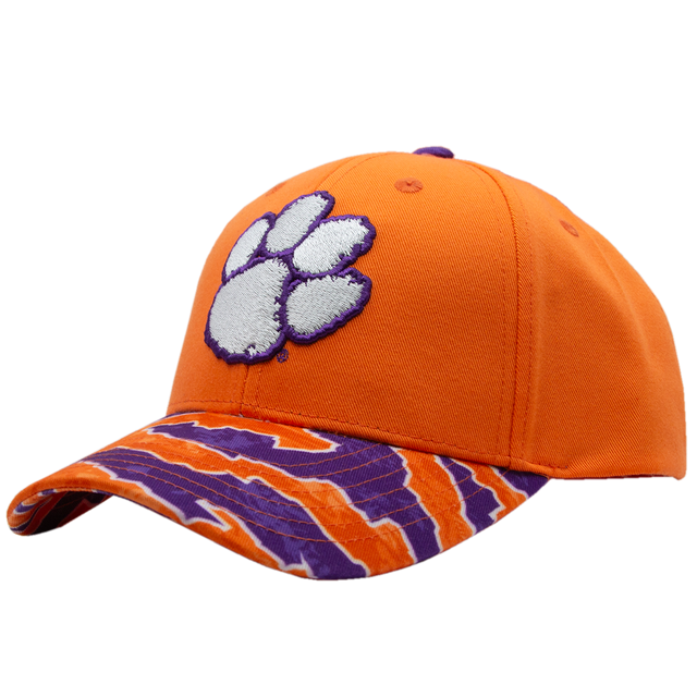 Clemson Twill Snap Back Cap with Curved Tigerflauge Bill - Orange